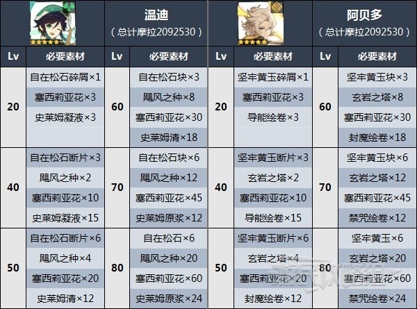 角色突破所需塞西莉亚花数量